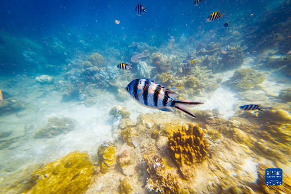 這是2019年7月7日在馬來(lái)西亞丁加奴州浪中島附近拍攝的海中景觀(guān)。