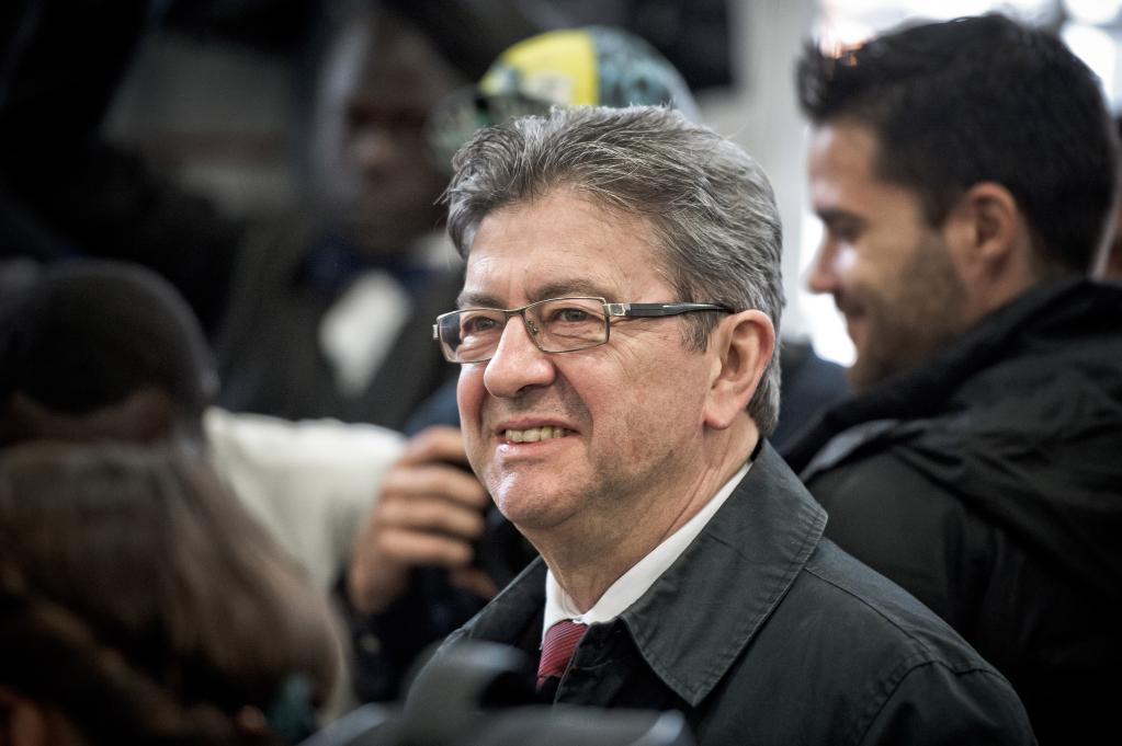 4月23日,在法國巴黎一處投票站,極左翼組織“不屈法國”候選人讓-呂克·梅朗雄參加法國總統選舉投票。(新華社發(fā),于貝尓·勒沙攝)