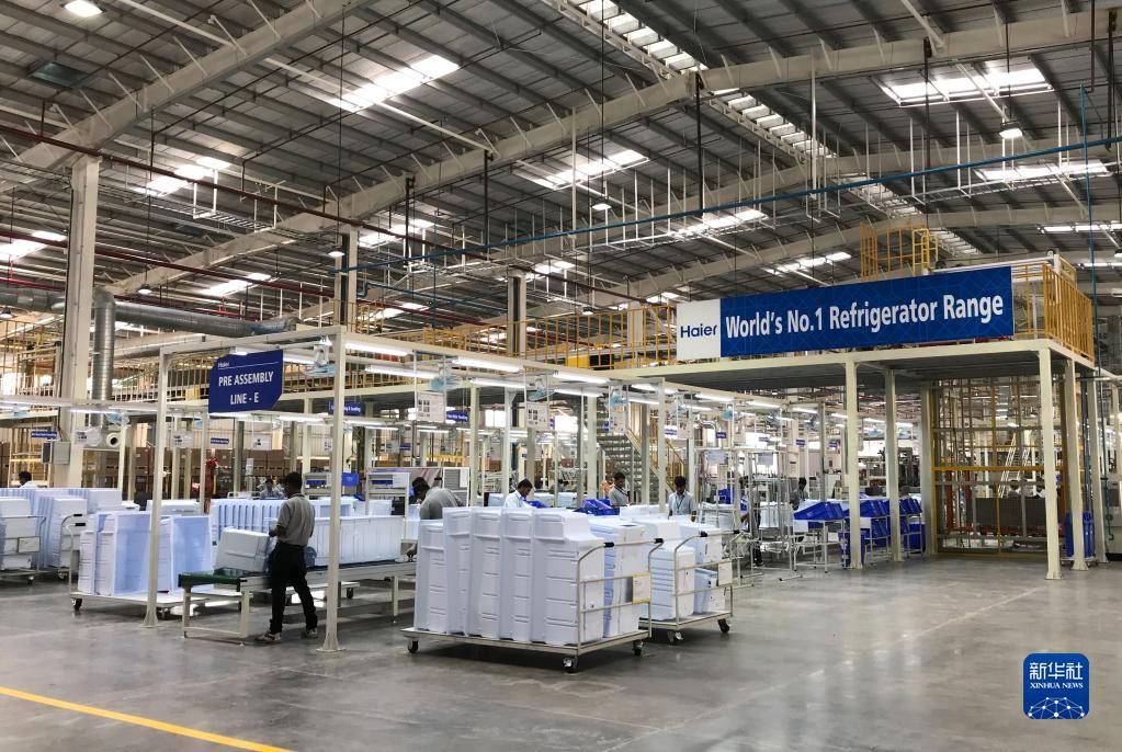 2017年11月16日,在印度浦那市,工人在中國海爾集團工業(yè)園廠(chǎng)房?jì)裙ぷ?。新華社記者 張興軍 攝