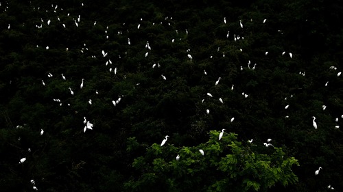 在位于鹽城東部沿海的大豐麋鹿國家級自然保護區,一群白鷺在樹(shù)頂棲息。新華社記者李響攝