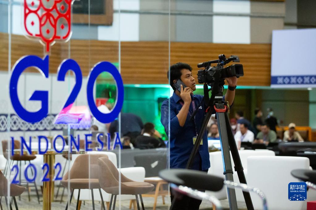 11月13日,媒體工作者在印度尼西亞巴厘島的峰會(huì )媒體中心工作。