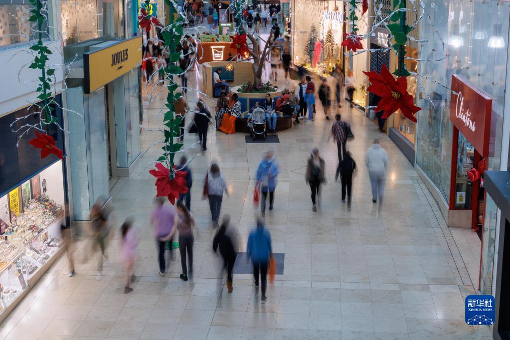 11月13日,人們行走在英國貝辛斯托克一家購物中心內。