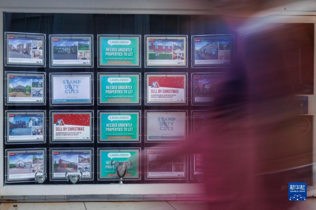 11月13日,行人走過(guò)英國貝辛斯托克一家房屋中介門(mén)店。