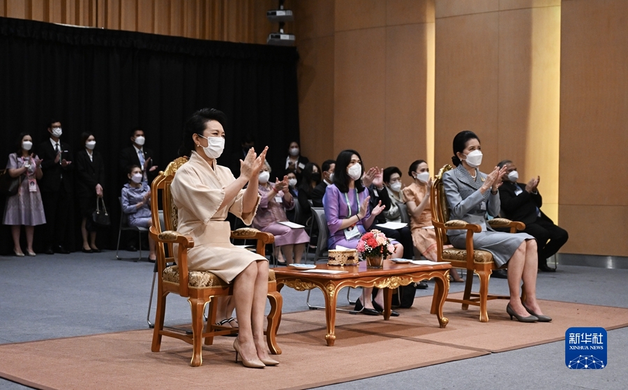 彭麗媛與娜拉蓬等合影并共同觀(guān)看甘拉雅尼音樂(lè )學(xué)院、南京藝術(shù)學(xué)院線(xiàn)上線(xiàn)下聯(lián)合匯報演出。中泰學(xué)生們演繹了《中華頌歌》、《茉莉飄香》、《遠沙行》、《漂水燈》等兩國經(jīng)典曲目。彭麗媛為學(xué)生們的精彩表演鼓掌。彭麗媛贊賞甘拉雅尼公主倡議建立這所培養高級專(zhuān)門(mén)音樂(lè )人才的藝術(shù)教育高等院校,贊賞娜拉蓬為推動(dòng)學(xué)院與中方院校合作作出的努力。她說(shuō),音樂(lè )無(wú)國界。盡管中泰語(yǔ)言不同,但我們通過(guò)音樂(lè )能夠溝通心靈。在今天的表演中,我感受到了“中泰一家親”的深厚情誼。