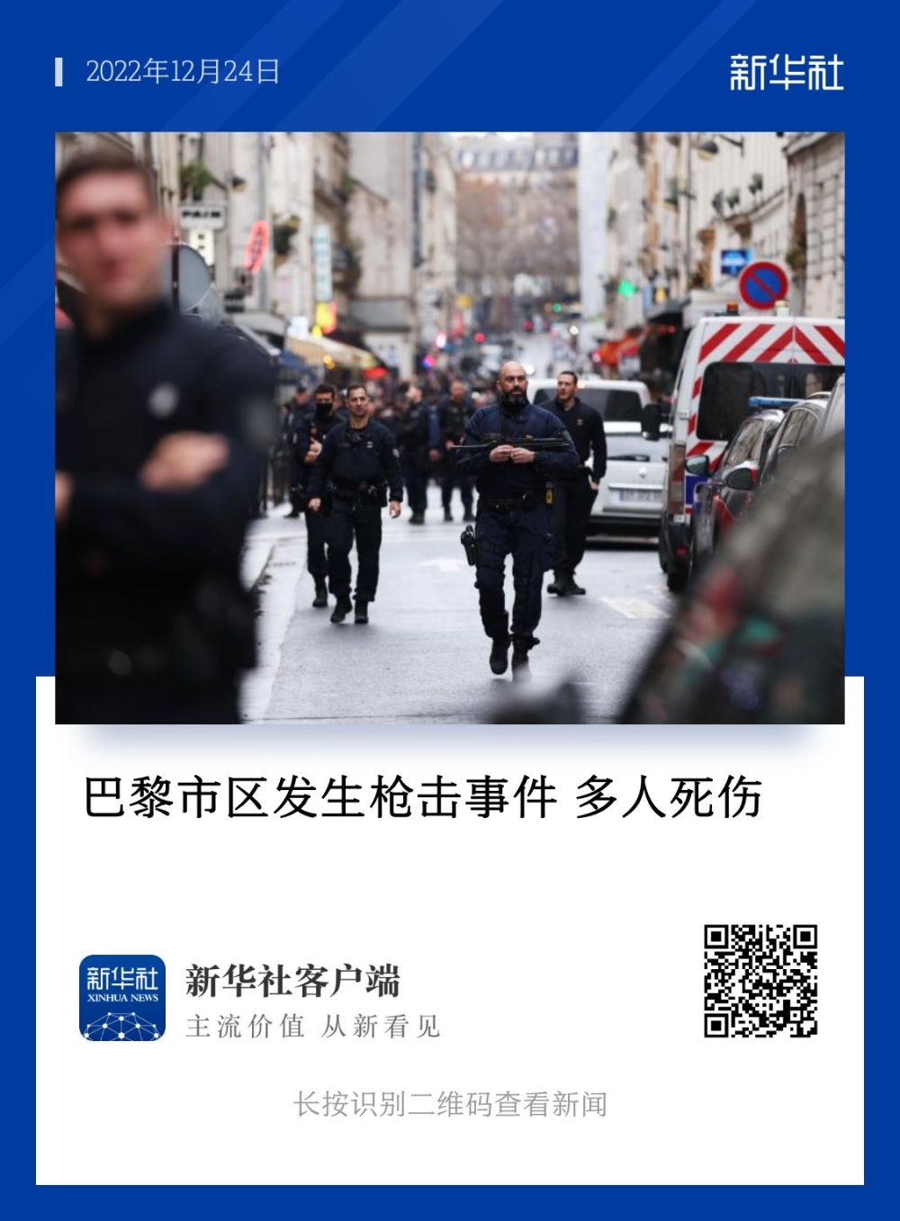 ↑2022年12月23日,警察在法國巴黎10區發(fā)生槍擊事件的街口警戒。槍擊事件導致3人死亡、多人受傷。