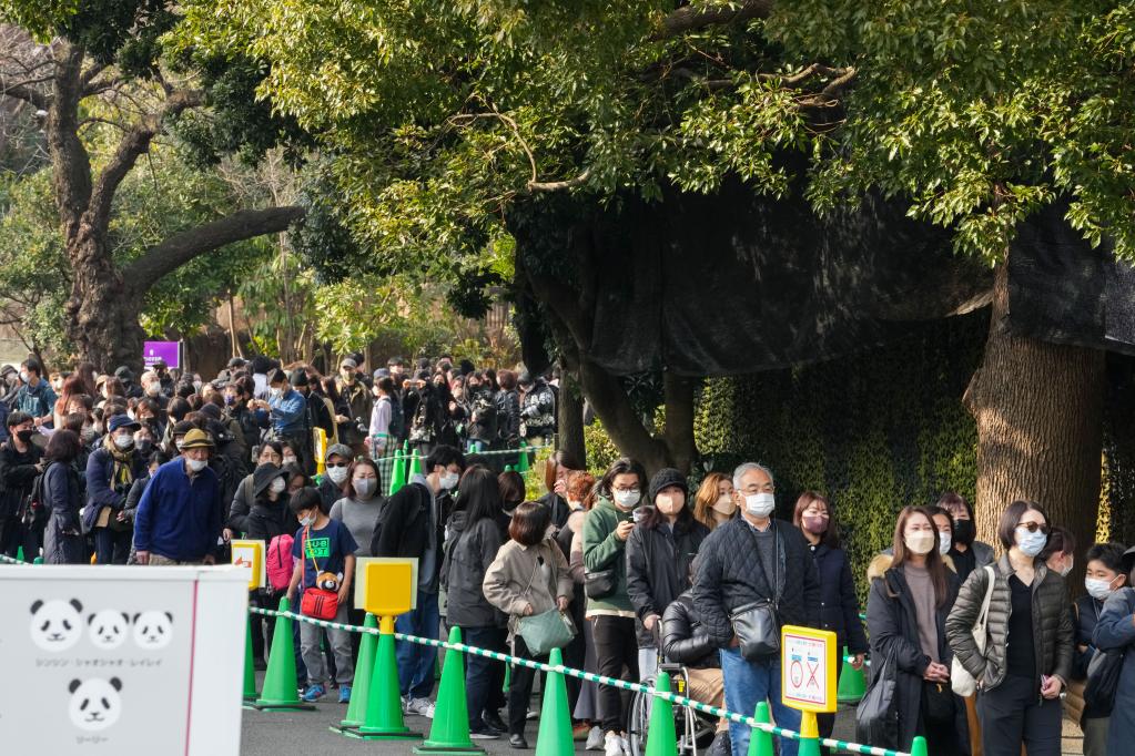 2月19日,在日本東京上野動(dòng)物園,游客排隊等待與大熊貓“香香”告別。新華社記者張笑宇攝