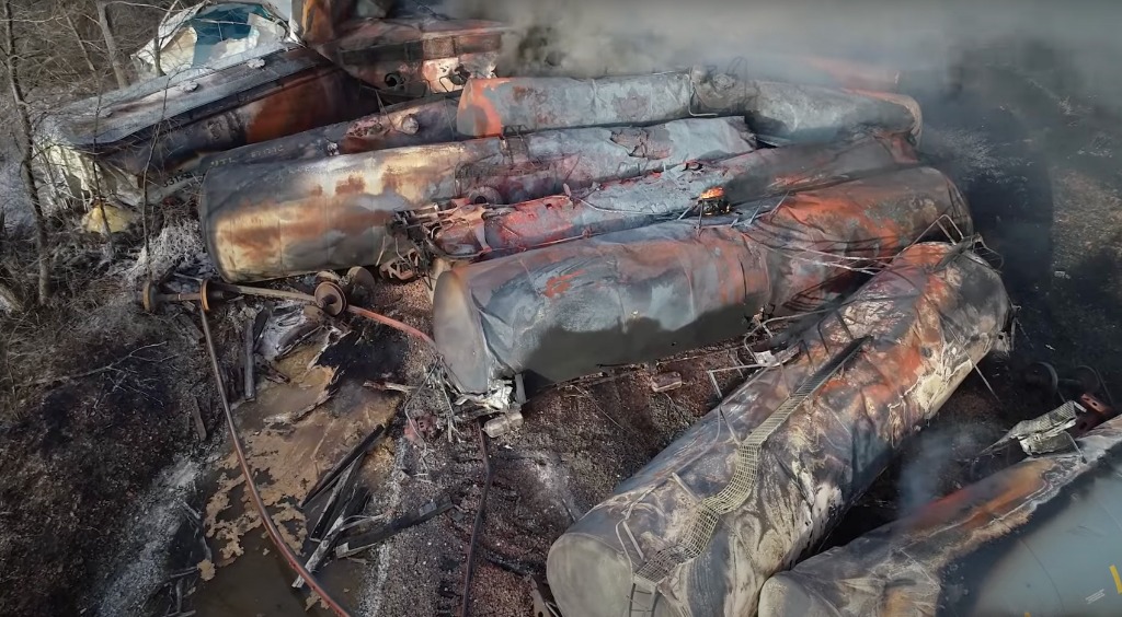 本月3日,諾??四戏焦疽涣胸涍\列車(chē)駛經(jīng)東巴勒斯坦鎮時(shí)發(fā)生事故,共50節車(chē)廂脫軌或損壞;20節運載危險品的車(chē)廂中有11節脫軌,其中5節載有氯乙烯。應急人員6日以避免大規模爆炸為由,對脫軌氯乙烯罐車(chē)進(jìn)行“受控釋放”,燃燒產(chǎn)生的滾滾黑煙在東巴勒斯坦鎮上空彌漫。