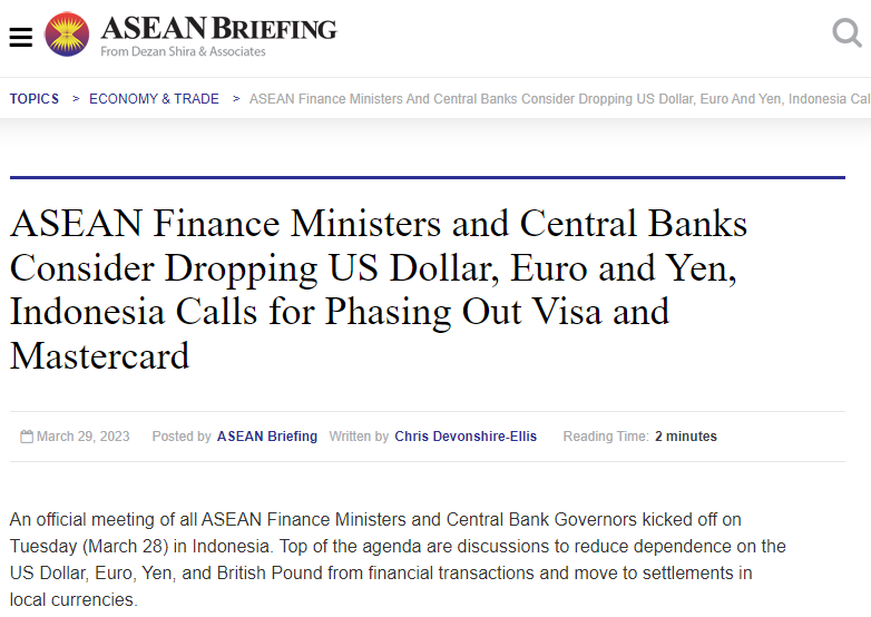 《東盟簡(jiǎn)報》網(wǎng)站報道,東盟財長(cháng)和央行行長(cháng)會(huì )議近期在印度尼西亞舉行。會(huì )議的首要議程是討論如何減少金融交易對美元等貨幣的依賴(lài),轉向以當地貨幣結算。