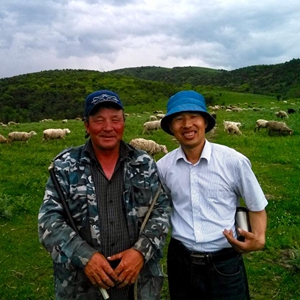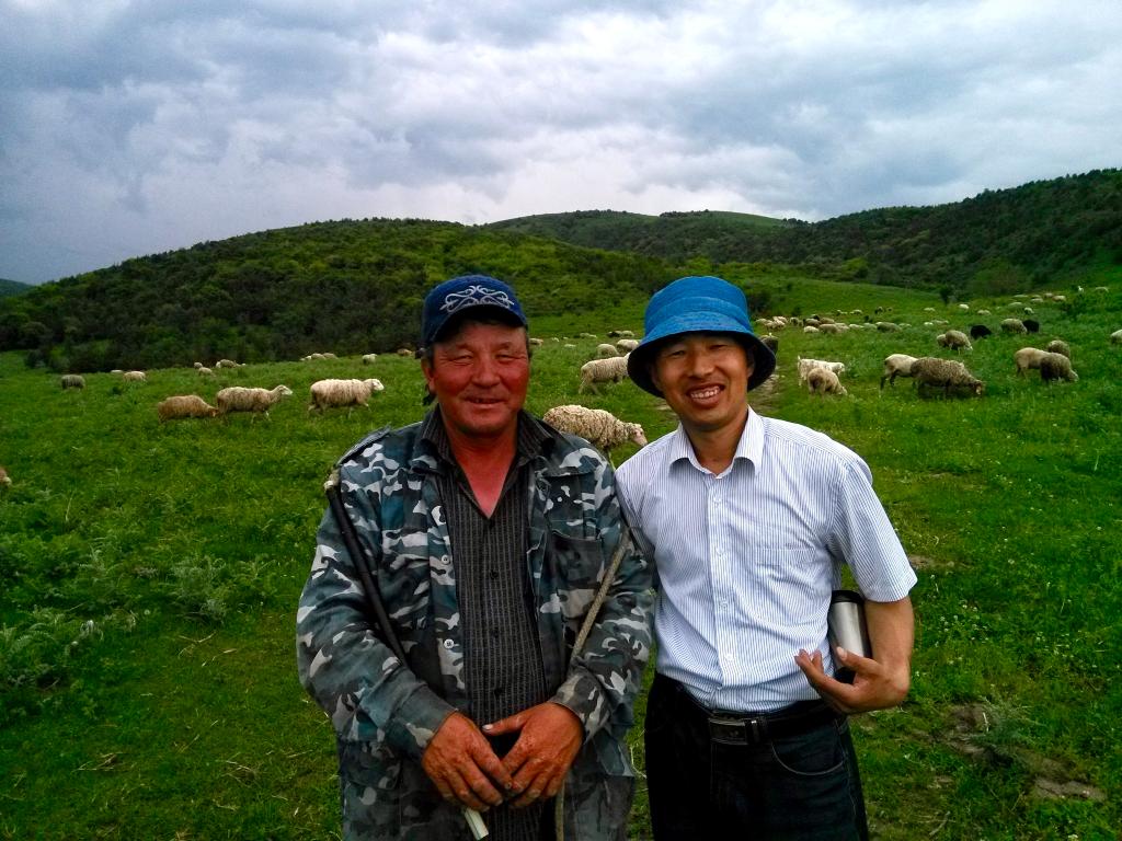 2017年,陜西省考古研究院赴哈薩克斯坦考古隊現場(chǎng)負責人丁巖與哈薩克斯坦牧羊人合影。(受訪(fǎng)者供圖)