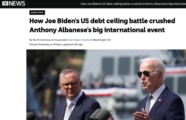 澳大利亞廣播公司的一篇報道標題更直白——《拜登的債務(wù)上限之戰如何搞砸阿爾巴尼斯的國際大事》。