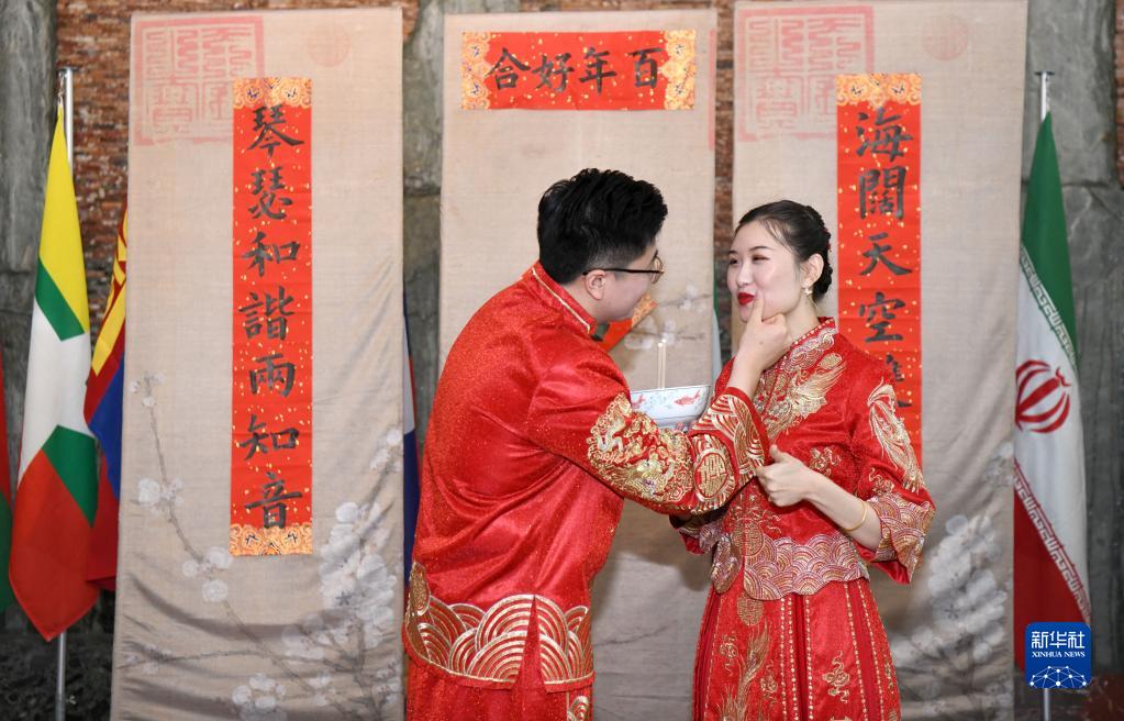 6月7日,在瑞士日內瓦,中國常駐聯(lián)合國日內瓦辦事處和瑞士其他國際組織代表團的新郎齊林和新娘張秋若在以亞洲婚俗文化為主題的第三屆日內瓦“亞洲文化節”上舉辦中式婚禮。