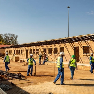 6月8日,在南非豪滕省,工人在莫策戈法迪瓦小學(xué)校舍重建項目的工地上工作。
