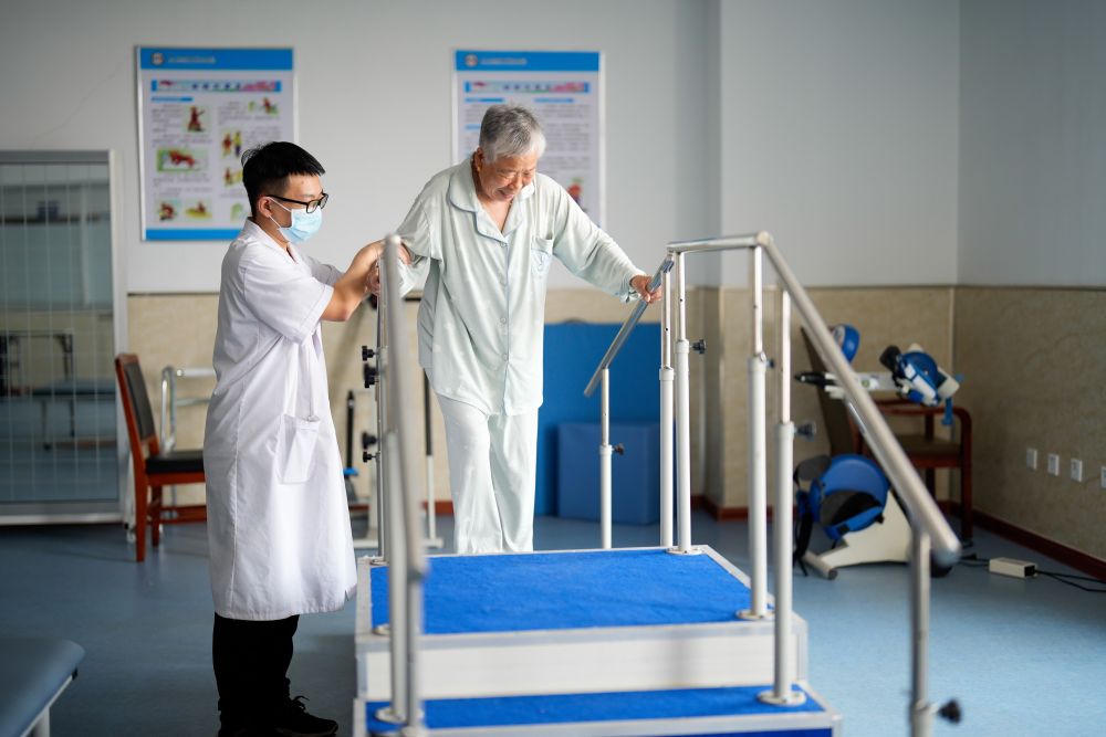 河北省灤南縣一家養老機構的工作人員在指導老人進(jìn)行康復訓練(2023年5月19日攝)。新華社記者 牟宇 攝
