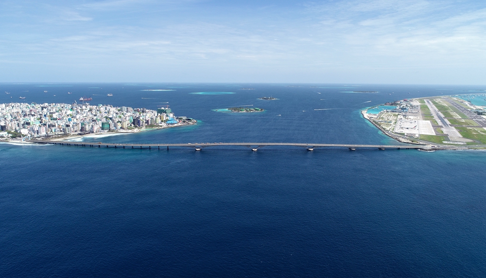這是在馬爾代夫航拍的連接首都馬累和機場(chǎng)島的中馬友誼大橋(2019年8月30日攝)。2018年8月30日,中國和馬爾代夫兩國共建“一帶一路”的標志性項目——中馬友誼大橋通車(chē),結束了馬爾代夫首都馬累與新興城市、第二大島胡魯馬累之間只能通過(guò)輪渡往來(lái)的歷史。新華社發(fā)(王明亮攝)