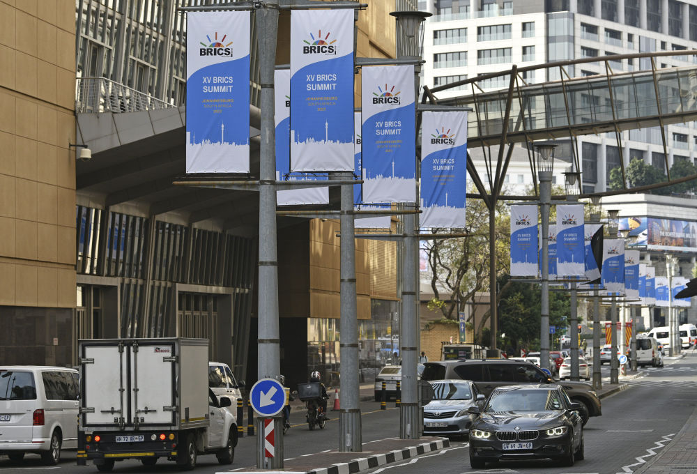 這是8月17日在南非約翰內斯堡拍攝的金磚峰會(huì )條幅。金磚國家領(lǐng)導人第十五次會(huì )晤將于南非約翰內斯堡舉行。新華社記者 陳誠 攝