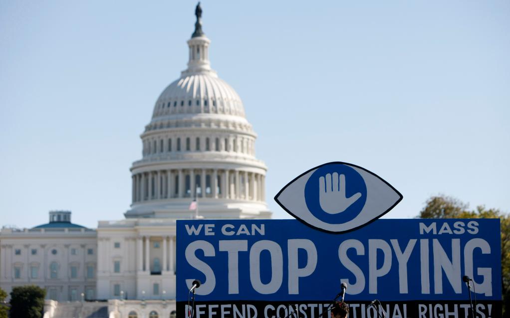 2013年10月26日,在美國首都華盛頓,一塊反監控的大型標語(yǔ)牌豎立在國會(huì )大廈前。新華社記者 方喆 攝