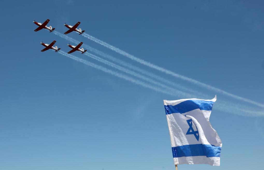 這是4月26日在以色列特拉維夫拍攝的飛行表演。新華社發(fā)(吉德翁·馬科維奇攝/基尼圖片社)
