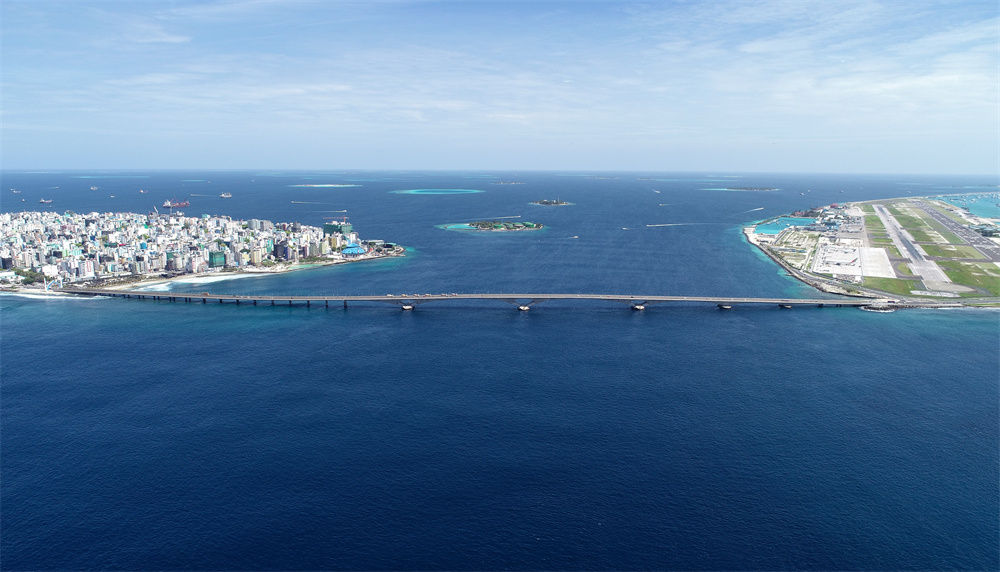 這是航拍的連接馬爾代夫首都馬累和機場(chǎng)島的中馬友誼大橋(2019年8月30日攝)。新華社發(fā)(王明亮攝)