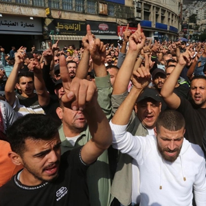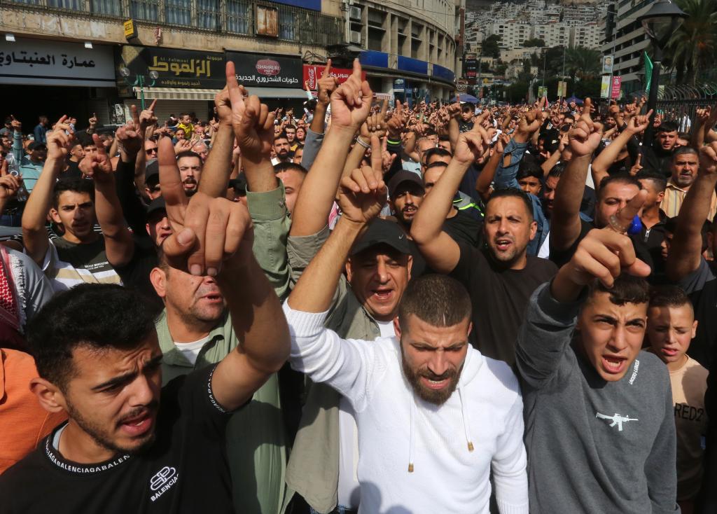 10月18日,在約旦河西岸城市納布盧斯,民眾上街游行抗議加沙醫院遭襲。新華社發(fā)(尼達爾·艾仕塔耶攝)
