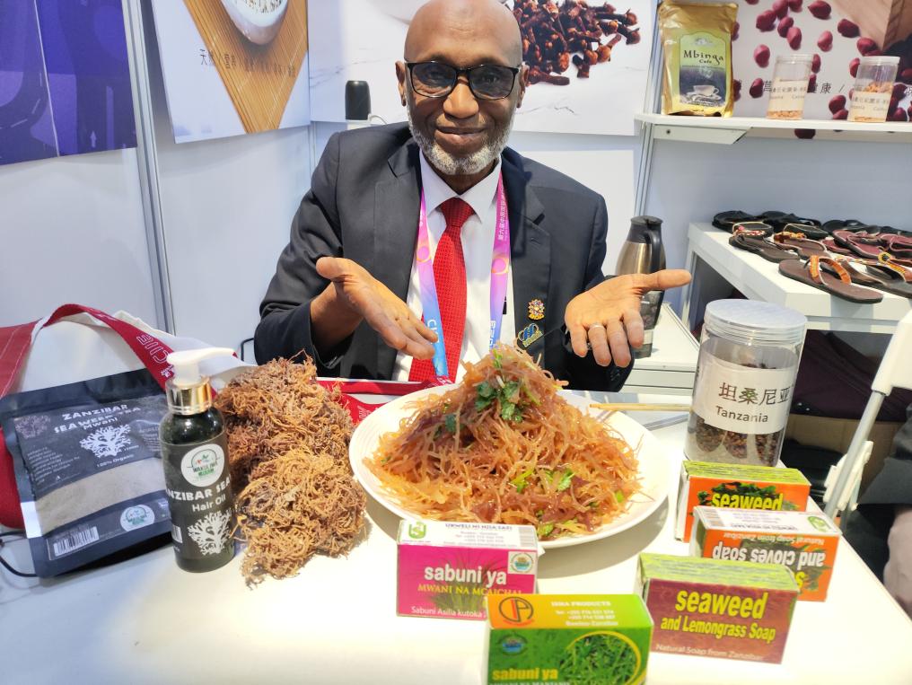 “來(lái)到進(jìn)博會(huì ),才知道我們的海藻產(chǎn)品有個(gè)好聽(tīng)的中國名字——麒麟菜,我們當地叫它Mwani?!边M(jìn)博會(huì )上,來(lái)自坦桑尼亞的參展商納蘇爾·達基向記者介紹起來(lái):麒麟菜是產(chǎn)自坦桑尼亞桑給巴爾島的特色海藻,既可以直接作為涼菜,也可以用作工業(yè)原料,被當地譽(yù)為“綠色黃金”。