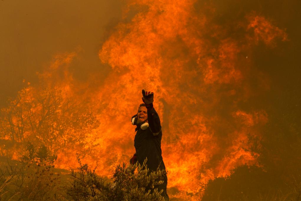 圖為2023年8月22日,消防員在希臘首都雅典附近的查西亞村滅火。新華社發(fā)(馬里奧斯·羅洛斯 攝)