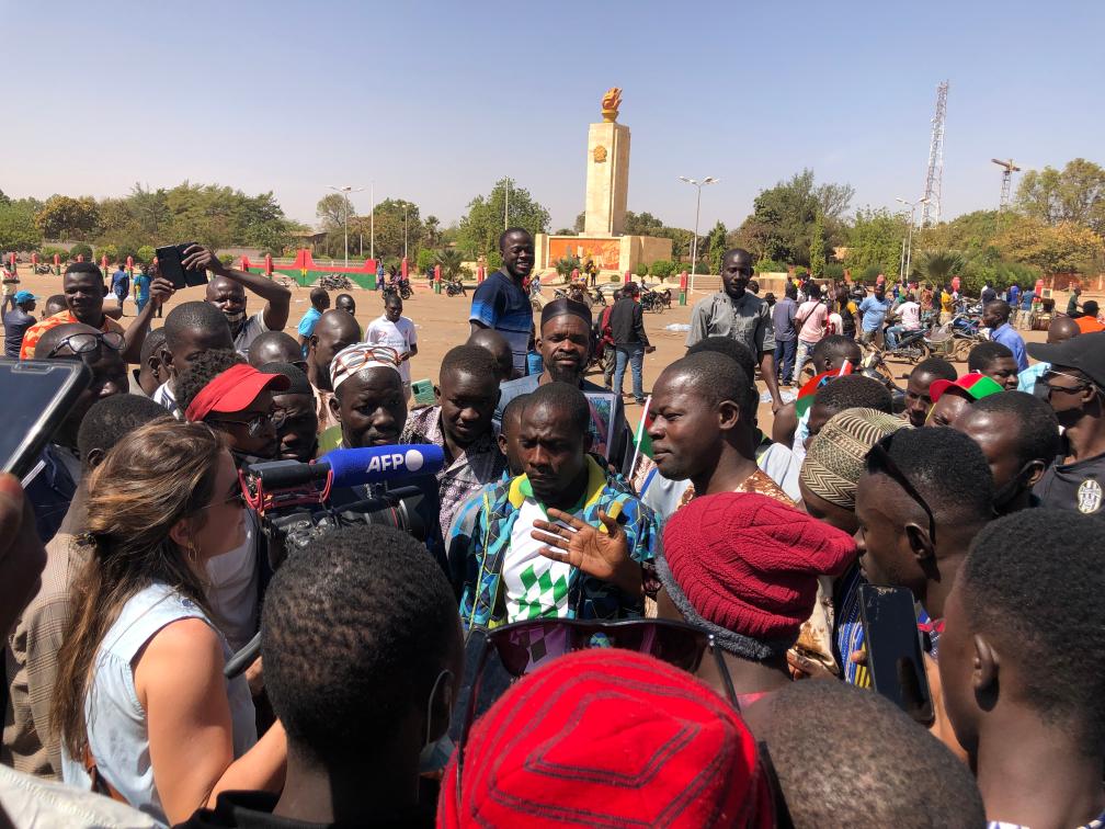 2022年1月25日,示威者聚集在布基納法索首都瓦加杜古的民族廣場(chǎng)支持政變軍人(手機拍攝)。新華社發(fā)(讓·保羅攝)