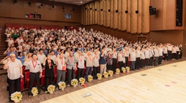 ??“往年,‘光榮在黨50年’紀念章多由湖西街道各社區舉辦儀式頒發(fā)?!焙鹘值傈h工委副書(shū)記蘇芳說(shuō),“今年,我們擴大規模,讓這份榮譽(yù)更顯莊重。經(jīng)過(guò)調研發(fā)現,今年符合頒發(fā)條件的老黨員們大多身體康健。因此,我們邀請27位老黨員參加這次頒發(fā)儀式,并在長(cháng)影音樂(lè )廳中安排了一堂‘音樂(lè )黨課’?!?