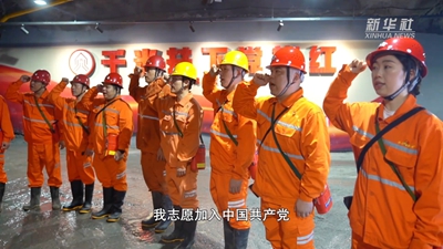 “我志愿加入中國共產(chǎn)黨,擁護黨的綱領(lǐng),遵守黨的章程……”6月30日,在銅陵有色金屬集團股份有限公司冬瓜山銅礦負930米中段的黨建文化陣地,9名新黨員在支部書(shū)記的帶領(lǐng)下莊嚴宣誓。