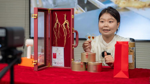 整片原切人參凍干片裹上黑巧或白巧;將人參凍干片和奶茶粉混合沖出一杯奶茶……在吉林省吉林市永吉縣東響水村的“博大農林長(cháng)白山人參生產(chǎn)研發(fā)基地”,“活力中國調研行”記者們感受到了人參“大變身”的魔力。