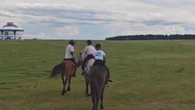 近期,在內蒙古呼倫貝爾市202省道的道樂(lè )都驛站附近的草場(chǎng)上,牧民將自己的兒女抱上馬背,騎馬走向遠方。