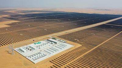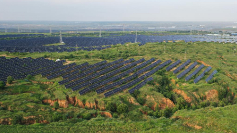 沙漠深處,一張張藍色光伏板如波浪般向天際延伸,它們靜靜地吸收著(zhù)炙熱的陽(yáng)光,將不毛之地變成巨大的“綠色電站”。